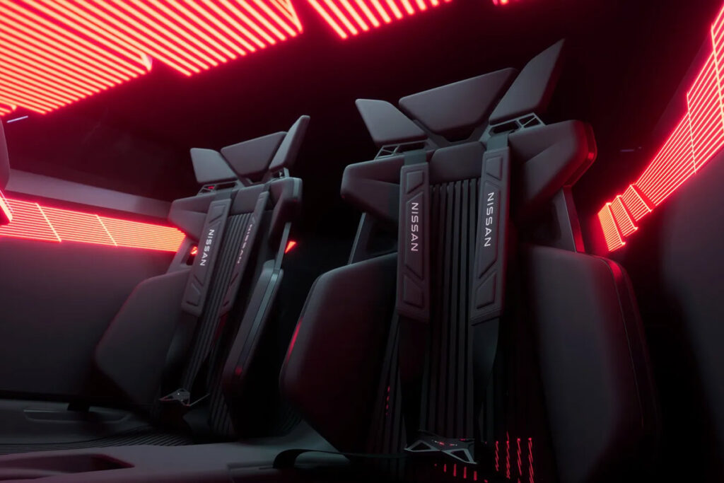 Die Leistung wird durch die Allradtechnologie „e-4ORCE“ auf den Asphalt gebracht. Verpackt ist der Elektro-Sportwagen aus Japan in einer leichten, kantig anmutenden Karosserie. Diese soll nicht nur eine Hommage an den aktuellen GT-R darstellen – kastenförmige Silhouette, vier Rücklichter – sondern auch die typische GT-Tradition verfolgen. Dazu zählt hochfester Carbon und viel Aerodynamikkomponenten, die man in Zusammenarbeit mit Nismo entwickelte.